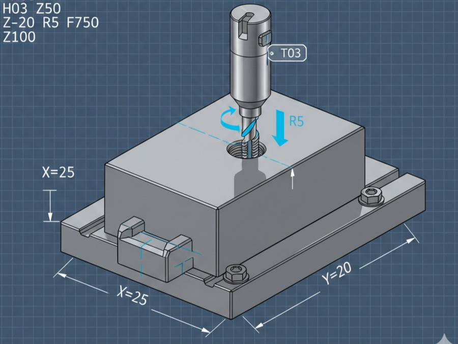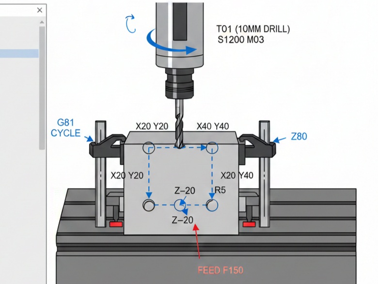 3. Fanuc G81 Drilling Cycle (Simple Drilling)